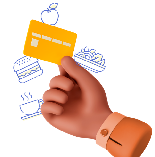 O vale-refeição e alimentação é um benefício que seu colaborador poderá usar em estabelecimentos como restaurantes, mercados, lanchonetes, padarias e muito mais.